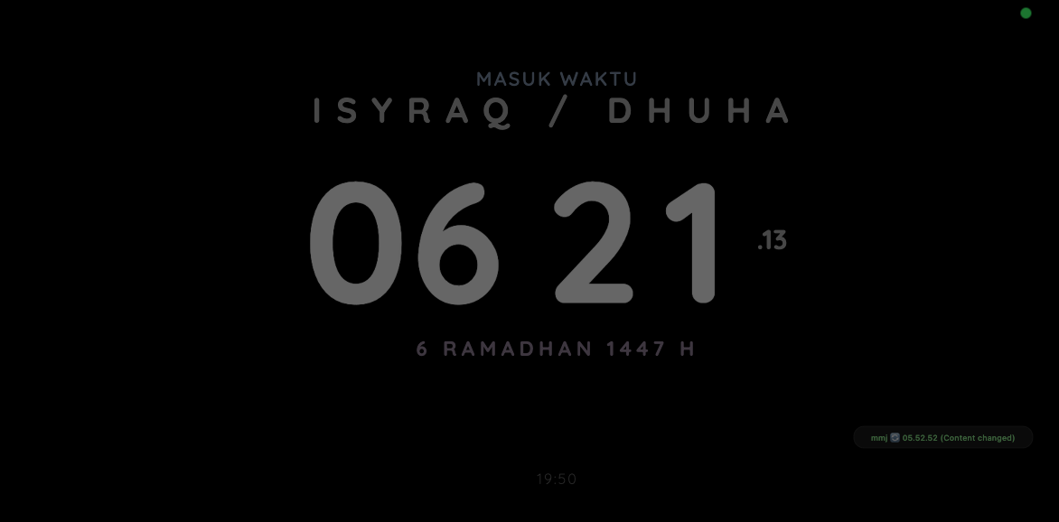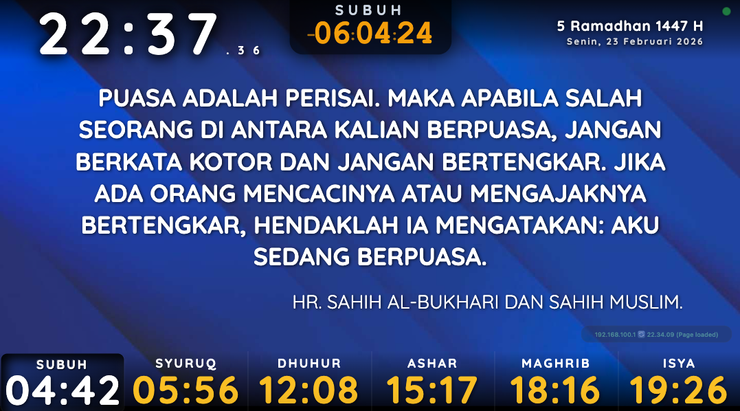 Otomatisasi jadwal sholat dan dakwah visual harian.